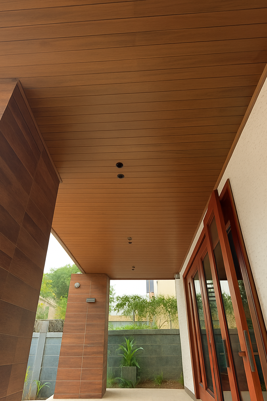 - Ốp trần, tường, mái hiên – mang lại vẻ sang trọng, tinh tế cho mặt tiền.